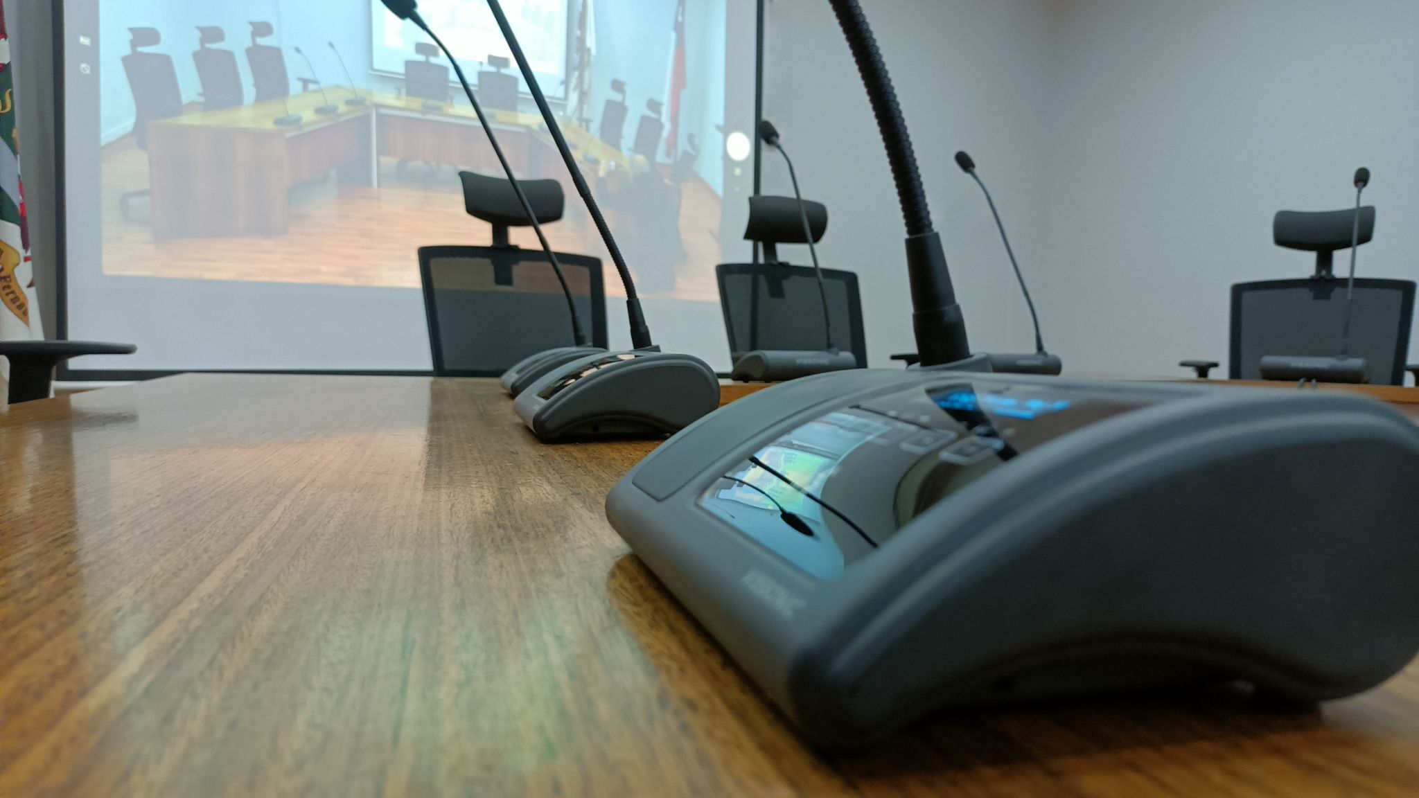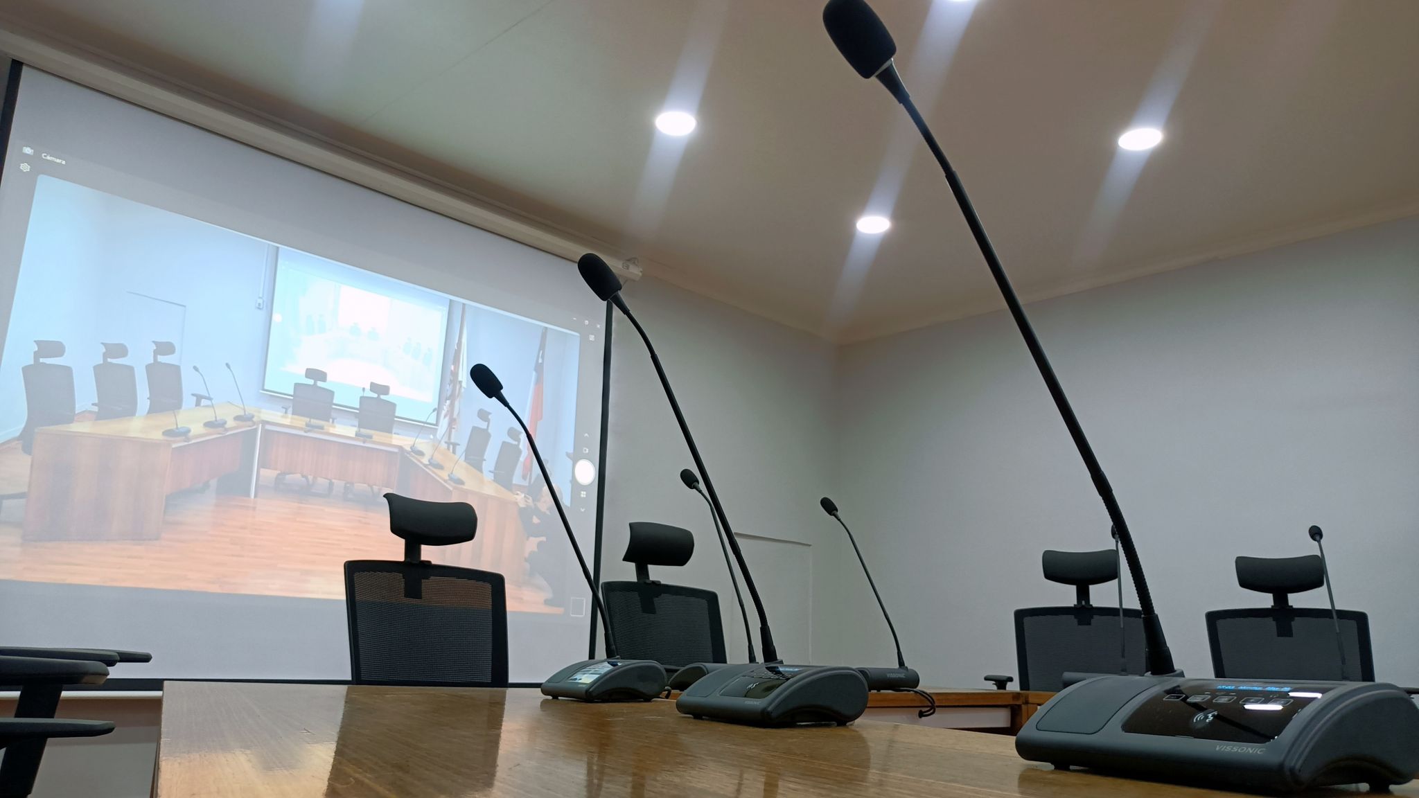 Sistema de conferencia cableado con 20 estaciones y cámaras PTZ integradas para transmisión oficial.